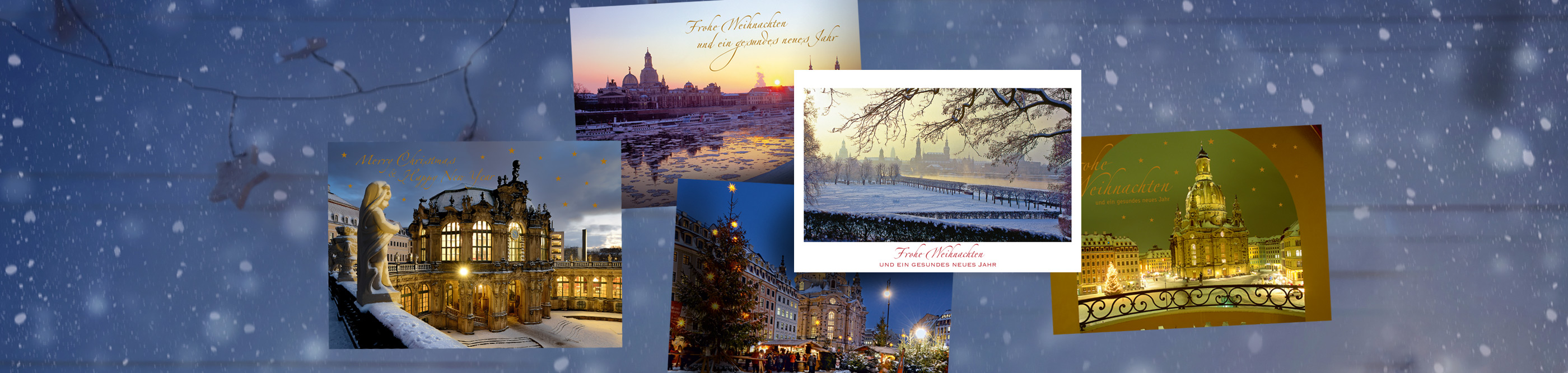 Nicht nur die stimmungsvollen Fotografien des Dresdener Fotografen Dietmar Berthold machen die Weihnachtskarten einzigartig festlich, sondern auch ihre hochwertige Verarbeitung mit Hochglanz-UV-Lackierung, Goldfolienprägung und eindrucksvollen Panorama-Formaten. Auf Ihren Wunsch drucken wir gern Ihre individuellen Weihnachts- und Neujahrsgrüße in Ihre ganz persönliche Weihnachtskarte – mit ansprechender Typografie als Eindruck inklusive Korrekturabzug. Selbstverständlich liefern wir Ihnen alle Weihnachtskarten mit einem passenden und zeitlosen Briefumschlag. Und für Firmenkunden erstellen wir gern ein Angebot mit Sonderkonditionen.